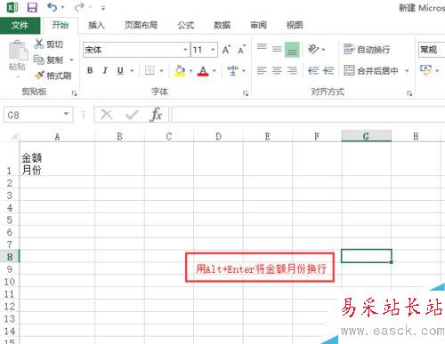 2、將光標停放在“金額月份”中用Alt+Enter 將金額月份換行