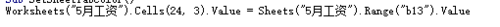 Sheet("5月工資").Range("c22").Value = Sheet("5月工資").Range("b13").Value