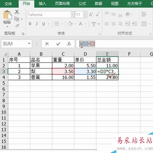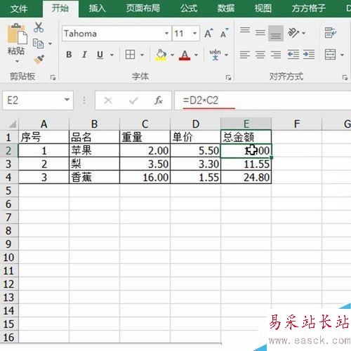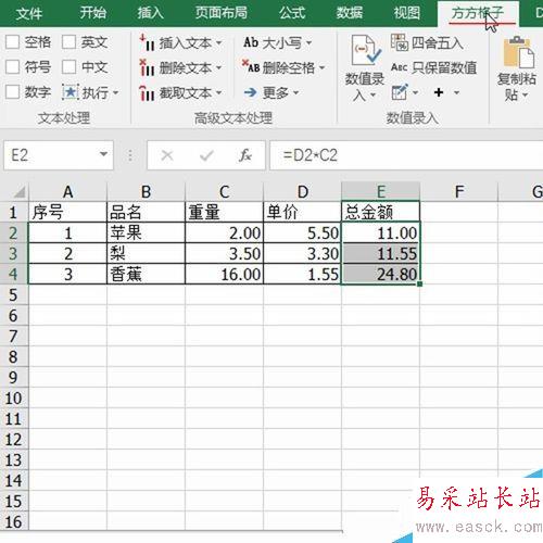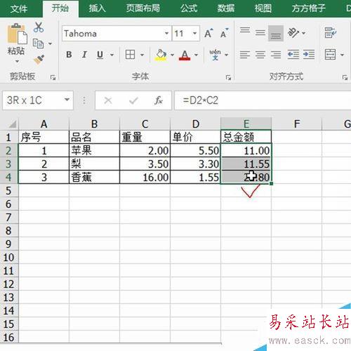 1、首先打開數據區域,看到總金額是由公式計算得來,如下圖所示: