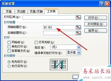 6、再打印標(biāo)題行顯示我們選擇的每頁(yè)打印標(biāo)題的范圍