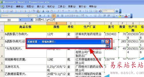 3、用鼠標(biāo)單擊打印標(biāo)題行右側(cè)的按鈕