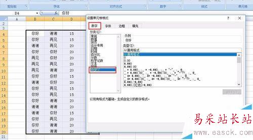 6、然后點擊下面的格式,在彈出的設置單元格格式窗口中選擇數字->自定義,在右側的類型中輸入; ; ;(英文輸入法的分號+空格+分號+空格+分號),輸入完成后一路點擊確定。