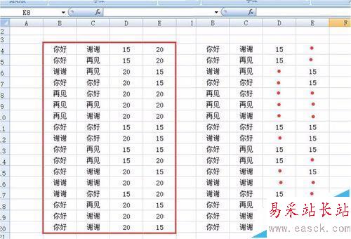 7、設置完成后再次回來看之前輸入的數據,我們可以發現之前是”20“的單元格都變為空白單元格了。