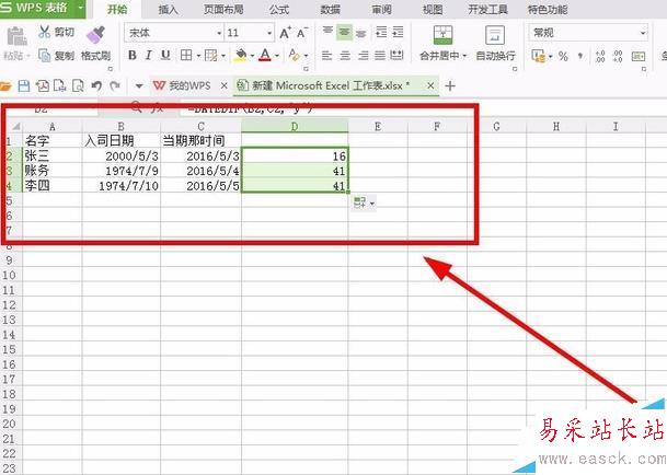 6、按回車鍵后,你發(fā)現(xiàn),此時(shí)計(jì)算工齡那表格里出現(xiàn)了錯(cuò)誤提示:#NAME?,這是什么原因?qū)е碌哪兀聪乱徊?/p>