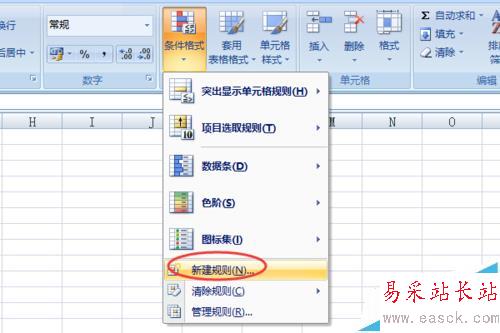 2、在開始選項卡中,找到格式:條件格式,單擊條件格式下的新建規則。
