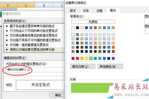 11、同樣我們也可以設置隔列顯示不同顏色,只要將上面的公式改成=MOD(COLUMN(),2)
