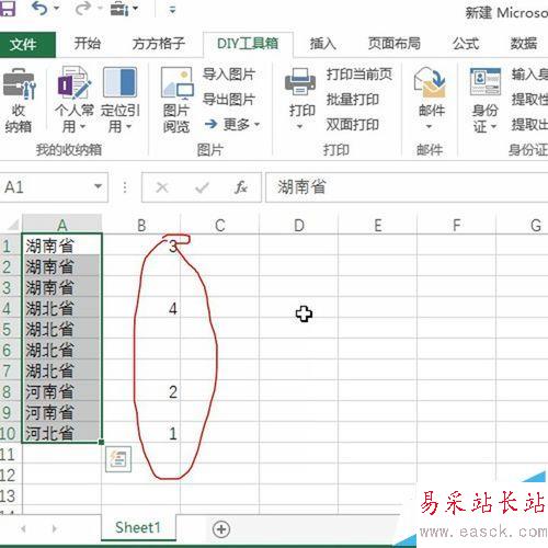 5、最后選擇刪除首行并選擇區(qū)域數(shù)據(jù),接著選擇diy工具箱中的個(gè)人常用中的連續(xù)相同值的個(gè)數(shù)統(tǒng)計(jì)按鈕,如下圖所示: