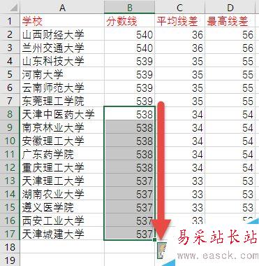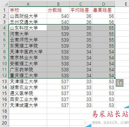 Ctrl+Shift+方向鍵,選擇從當前光標所在單元格到方向鍵所指的表格最邊緣有效數(shù)據(jù)單元格。