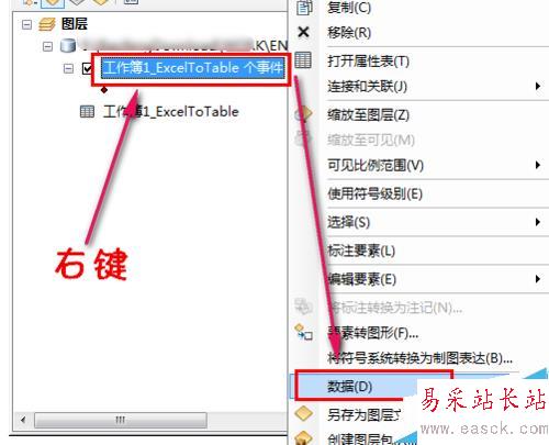 1、轉換成點后,在內容列表可發現多了個XXXX個事件,這就是點集文件,但尚不是矢量文件,通過右鍵它選擇數據,然后選擇導出數據。