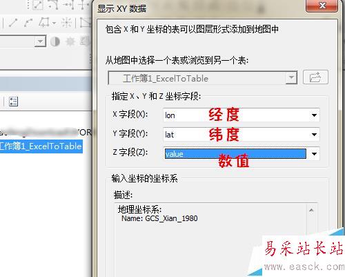 2、輸入Excel文件:點擊旁邊的文件夾小圖標,找到要轉換成點要素的Excel文件;