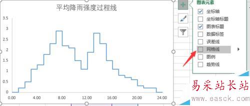 6、修改圖表標題,刪除網格線,進一步美化,就得到了降雨強度過程線
