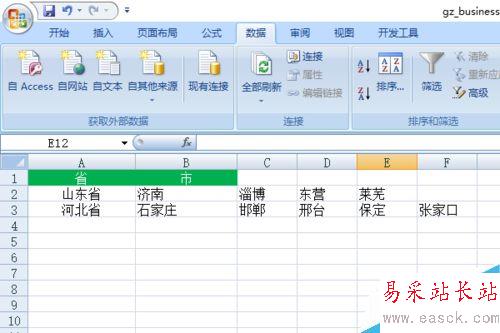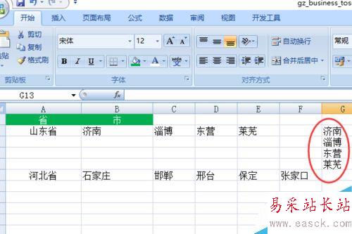 5、數據分列后,可以看到市已經分到不同的單元格了。