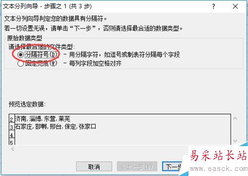 3、我們選擇逗號進行分割,然后單擊下一步。