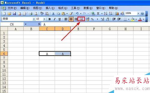 此時菜單欄的合并居中的圖標變成文字樣式:合并及居中(M)