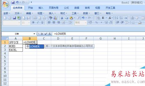 3、我們在B1單元格中輸入=LOWER.會彈出如圖效果