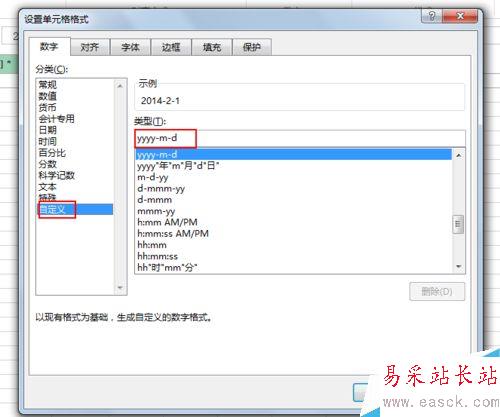 4、選擇自定義,輸入yyyy-m-d,確定。