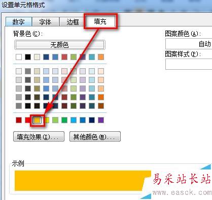 7、在【格式】選項卡選擇一個合適的填充色后返回前一界面點擊確定。這樣,當B2的日期減去電腦系統時間小于等于10天的時候,單元格就會被填充上剛才選中的顏色。