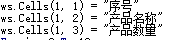 5、這里我們使用單元格選擇代碼直接對單元格進行賦值。ws.cells(1,1)選取的就是a1單元格,可以對其直接賦值字符串“序號”,一次類推。順序設置了產品名稱和產品數量。