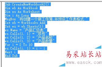 MsgBox "將創建一個新工作簿,并預設工作表格式."