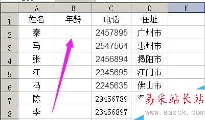 操作:在sheet2工作表A列右側插入一列,顯示為B列,原來B列變為C列,原來C列變為D列;