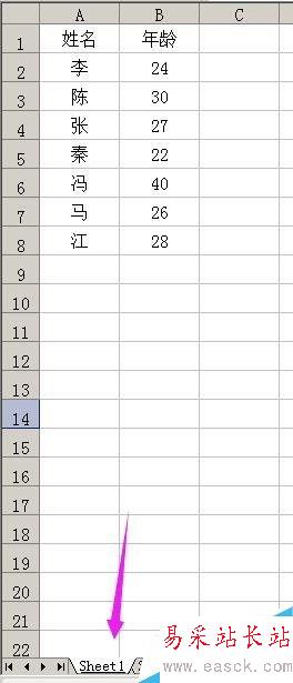 現在需要把sheet1工作表的年齡數據匹配到sheet2工作表中;