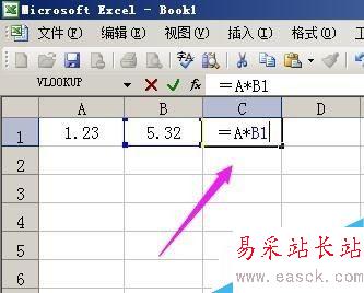 1.23X5.32,得數顯示在C1單元格中。如果不需要四舍五入保留小數位的話,直接在C1輸入:=A1*B1再按回車鍵就可以的了。