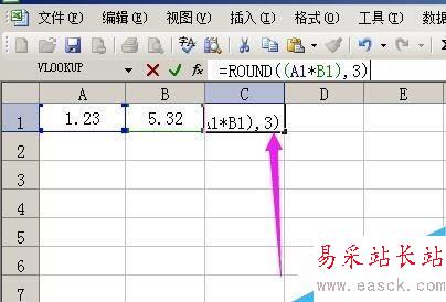 在C1單元格中輸入:=ROUND((A1*B1),3)然后按回車鍵。