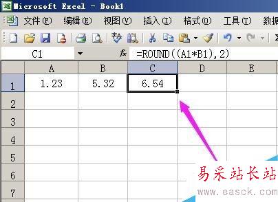在C1單元格輸入:=ROUND((A1*B1),2)然后按回車鍵。
