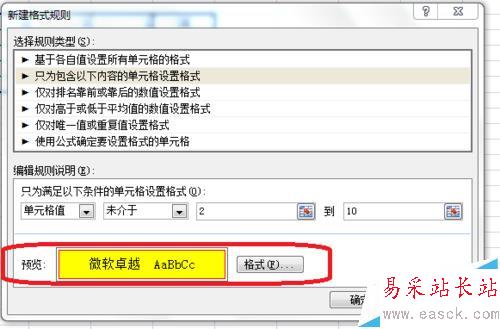 6、設(shè)置篩選的規(guī)則,填寫數(shù)值,點(diǎn)擊下方的“格式”設(shè)置凸顯的格式,然后點(diǎn)擊確定。