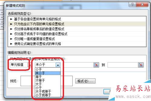 3、在彈出的小窗口中第一個(gè)輸入框輸入需要凸顯的數(shù)值,在后面選擇凸顯的格式。輸入完數(shù)值,設(shè)置好格式后,點(diǎn)擊確定。