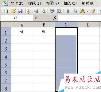 把光標放在C1單元格點住不放一直拉到C8,表示選中C1至C8單元格。