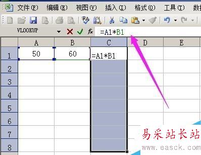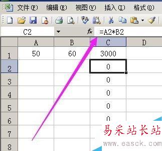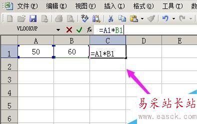在C1單元格輸入:=A1*B1,然后按回車鍵,
