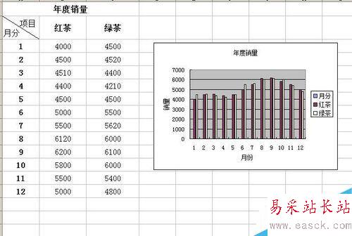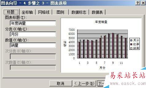 6、彈出的設置框內,在”圖表標題“這里,輸入該圖表的名稱,小編在這里輸入“年度銷量”;