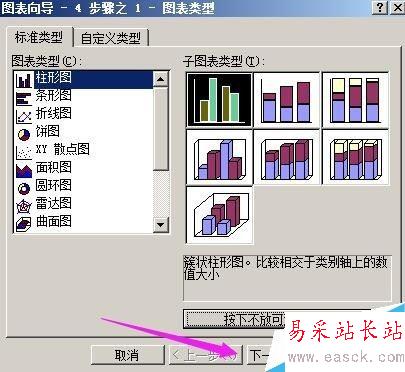 3、彈出:圖表向導;這里展示各種的圖表類型。
