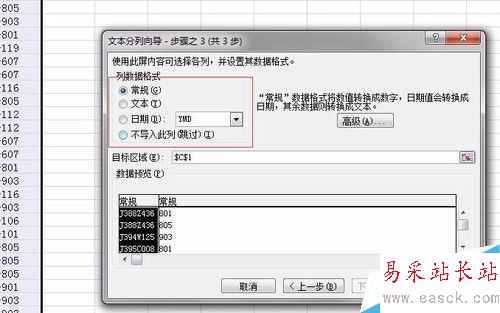 第三步:這一步可以設置分列后的數據格式,設置后點擊完成就OK啦~