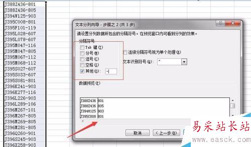 用固定符號分列:第二步:選取你進行分列所依據的符號,默認的四個選項可以選取,也可以在“其他”里面輸入其他的分隔符號,選取以后在數據預覽中會有分列效果預覽,確認后單擊下一步