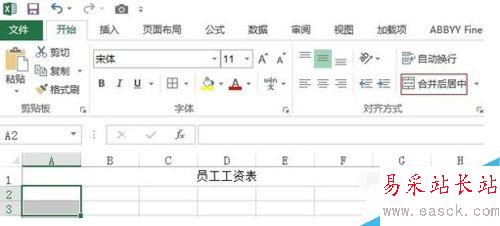 1、在第一行,選中A~G列。點(diǎn)擊工具欄上的【合并后居中】。 輸入文字“員工工資表”。