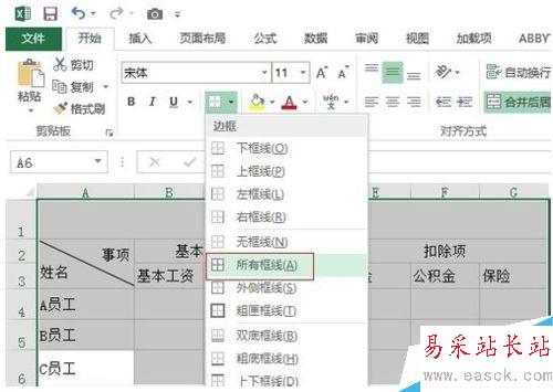 6、最后一步,選中這些單元格,點(diǎn)擊工具欄上的【邊框】,為表格添加邊框,這樣就完成表格的制作。