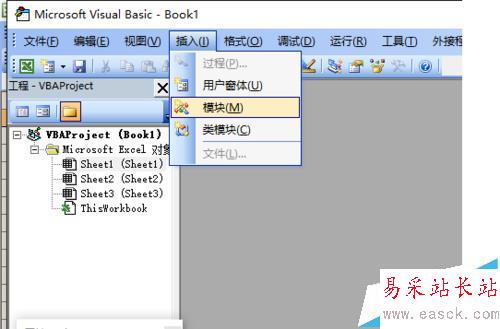 2、在哪里編程呢?操作Visual Basic編輯器的菜單欄,“插入”——“模塊”,就會在sheet1、sheet2、sheet3等列表的下面,出現一個文件夾——“模塊”,文件夾下面有一個“模塊1”。