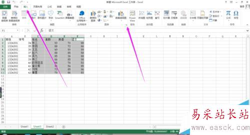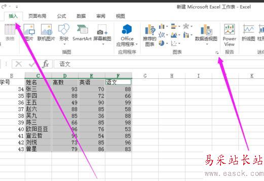 2、按住ctrl鍵,選擇你要做成圖表的數據的那一行或者那一列。比如我選擇姓名,高數,英語,語文這四列。