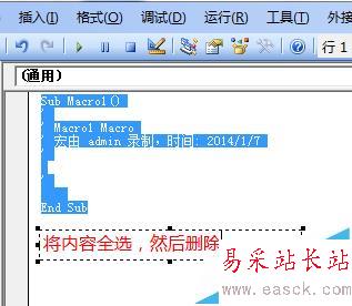 5、如圖進(jìn)去是一段空代碼,將代碼內(nèi)容全部選中,刪除