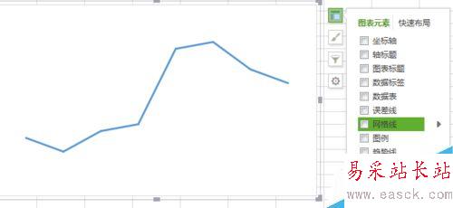 5、現在講所有的都進行不顯示操作以后,只要該做的就是講背景色進行顯示透明色,如下圖顯示。“選中折線-圖表-填充-無填充”就可以控制透明背景色了。