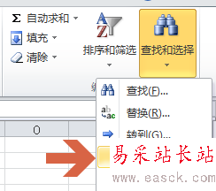 2、點(diǎn)擊excel2010菜單欄中的“查找和選擇”。