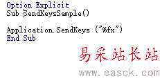 3、這個(gè)代碼很簡(jiǎn)單,sendkeys是應(yīng)用程序中的一個(gè)方法,作用是依次順序發(fā)送幾個(gè)按鍵值。對(duì)應(yīng)的鍵值可以看出%號(hào)是alt鍵,fx則是鍵盤(pán)上對(duì)應(yīng)的fx鍵。我們可以在excel中手動(dòng)運(yùn)行一下按下這三個(gè)鍵的作用。