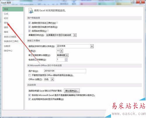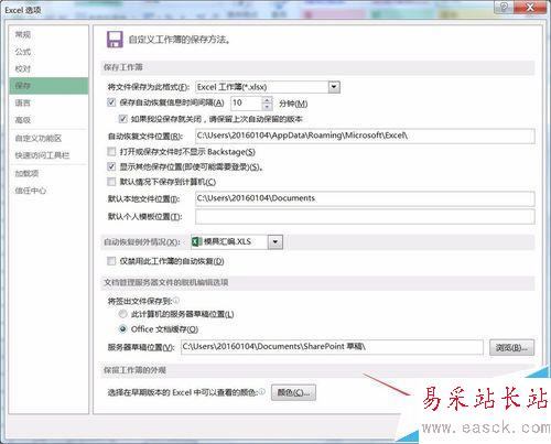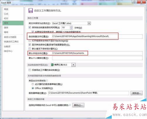 5、打開后我們可以看到,文件保存位置以及自動恢復的位置。
