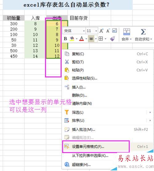 excel在出庫和入庫的倉庫管理中使用較多,如果都以正數(shù)顯示,會(huì)看起來不清晰,而一個(gè)個(gè)的敲“負(fù)號(hào)”又太過麻煩,本文用例子為大家演示如何進(jìn)行數(shù)字的自動(dòng)給顯示負(fù)數(shù)。