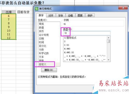4、在單元格格式里,可以看到很多選,點(diǎn)擊自定義選項(xiàng),添加“-0”,這個(gè)主要是在數(shù)據(jù)里自動(dòng)添加-號(hào),0代表的數(shù)據(jù)。