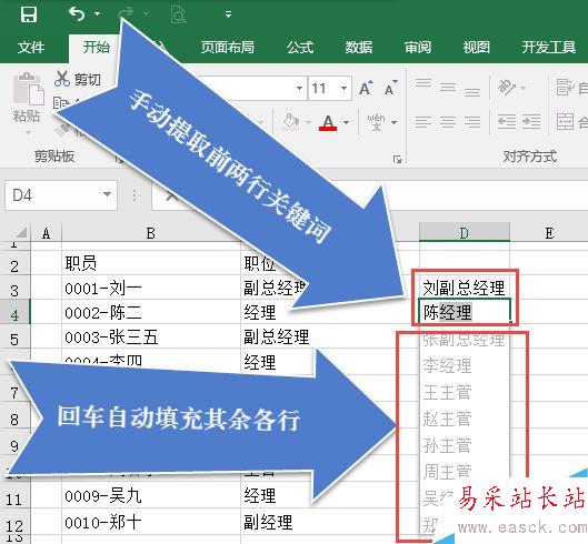以上案例在Excel 2016版中的智能自動填充法說明: