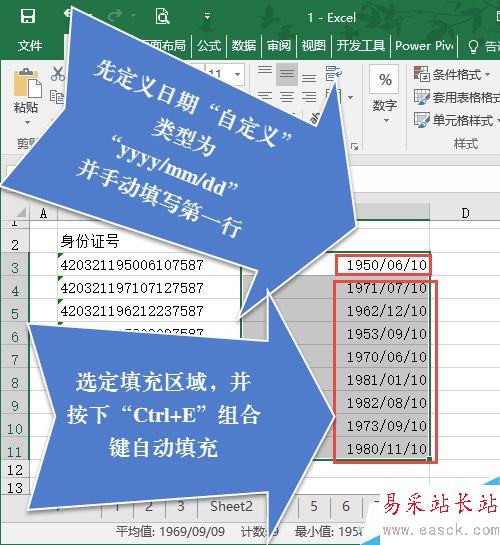 實例6:【自動抽取+換格式】從身份證中自動提取出生年月日