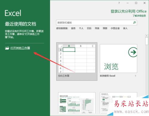 1、鼠標(biāo)左鍵雙擊計算機(jī)桌面Excel2016程序圖標(biāo),將其打開運(yùn)行。在打開的Excel2016程序窗口,點擊“打開其他工作簿”選項,打開需要進(jìn)行編輯的Excel工作表。如圖所示;